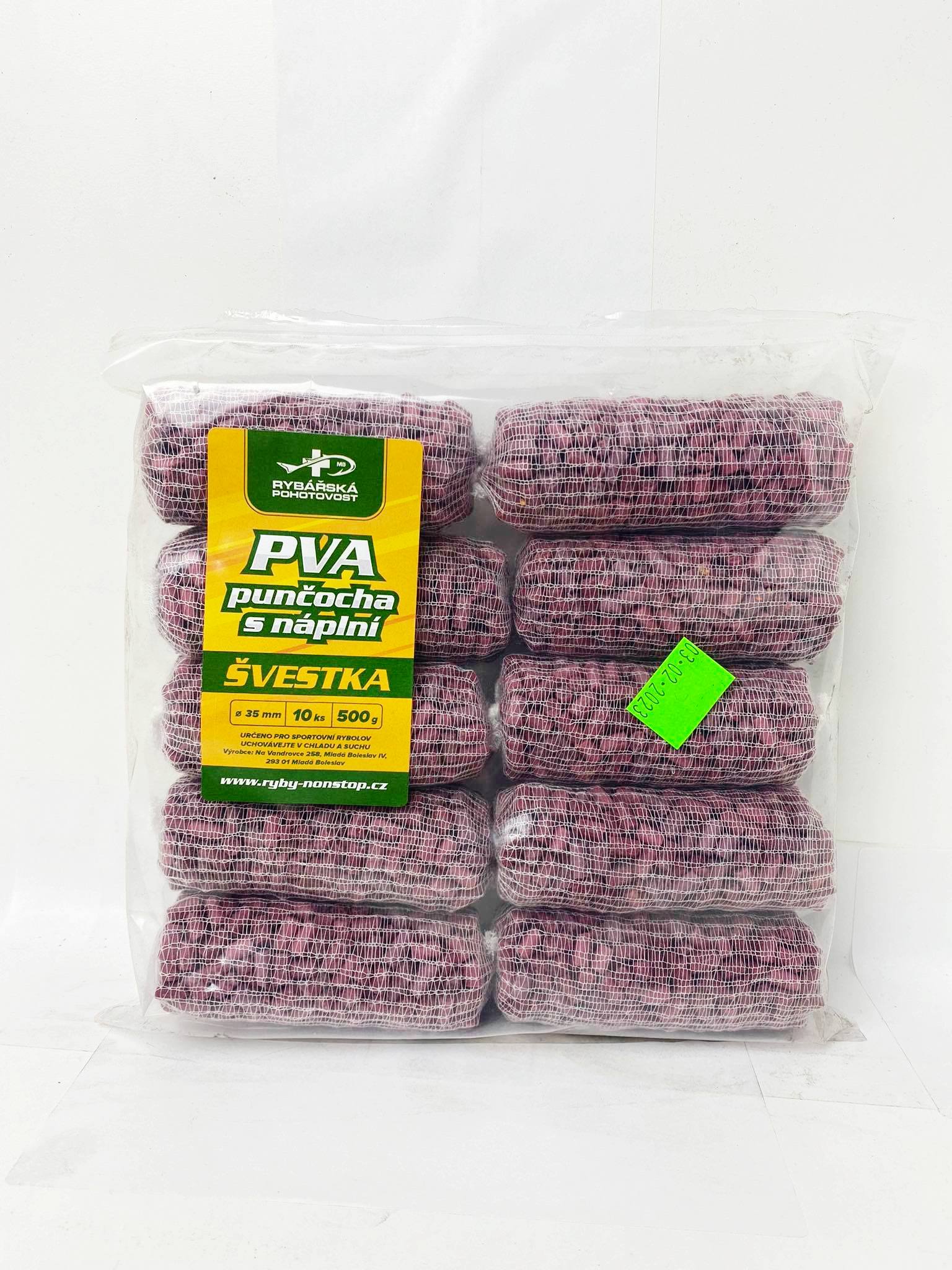 Nabízíme plněné PVA v průměru 35 mm a 25mm. Každé z nich obsahuje pelety s nízkým obsahem tuku o průměru 3mm naší výroby. Jedná se o oblíbené příchutě. Vhodné pro teplou i studenou vodu. Lze použít ke všem druhům boilie. Baleno po 10 ks. Používaná PVA punčocha je původem z Anglie. Plněné pva je jedinečný prostředek jak k vaší nástraze dopravit i krmení.